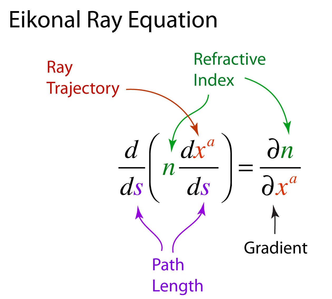 This is a second-order ordinary differential equation in the variables xa that define the ray path through the system. It is literally a “trajectory” of the ray, and the Eikonal equation becomes the F = ma of ray optics.
