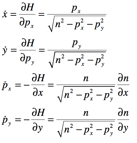 The trajectory of the rays is the solution to Hamilton’s equations of motion applied to this Hamiltonian