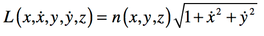 where the “dot” is a derivative with respedt to s. The optical Lagrangian is recognized as