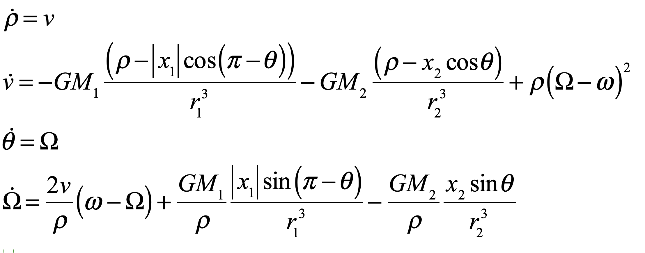 yp[3] = 2*y*(womega-w)/x - womega**2*R**3*chsi*abs(x2)*np.sin(z)/(x*(r2**3+eps)) + womega**2*R**3*np.abs(x1)*np.sin(np.pi-z)/(x*(r1**3+eps))
