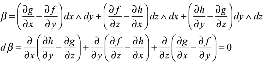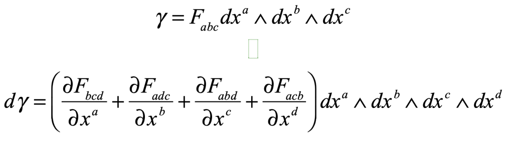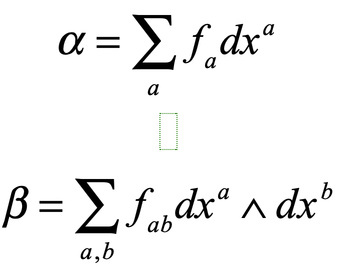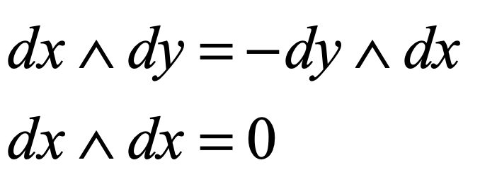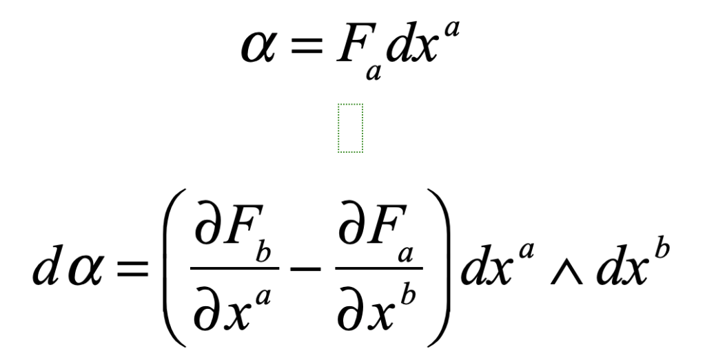 Figure. Exterior differentiation of a differential 1-form to yield a differential 2-form.