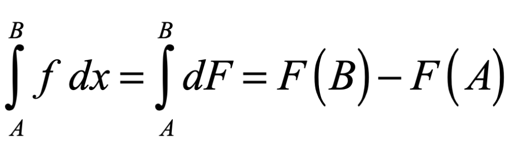 where F is called the “antiderivative” of the function f . The interpretation of the Fundamental Theorem is extremely simple:  The integral of a function over a domain is equal to its antiderivative evaluated at the boundary of the domain.  Generalizing this theorem a bit, it says that evaluating an integral over a domain is the same thing as evaluating a lower-dimensional quantity over the boundary of the domain.  The Fundamental Theorem of Calculus sounds a lot like Green’s Theorem or Stokes’ Theorem!  And in fact, they are all part of the same principle.  To understand this principle, we have to look into differential forms and the use of Grassmann’s wedge product and exterior algebra (the subject of my previous blog post).