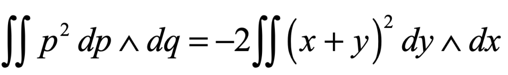 If you make the substitutions: x = (p-q)/2 and y = (p+q)/2, then dp = dx + dy and dq = dy – dx and