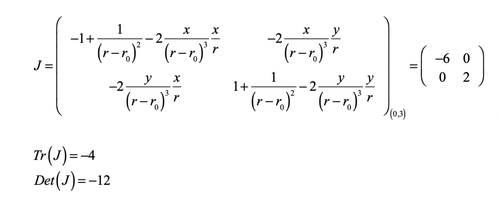 which is clearly a saddle point because the determinant is negative.