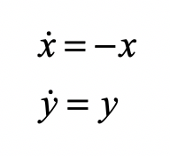 It is possible to embed basins of attraction within an existing dynamical system. As an example, let’s start with one of the simplest types of dynamics, a hyperbolic fixed point