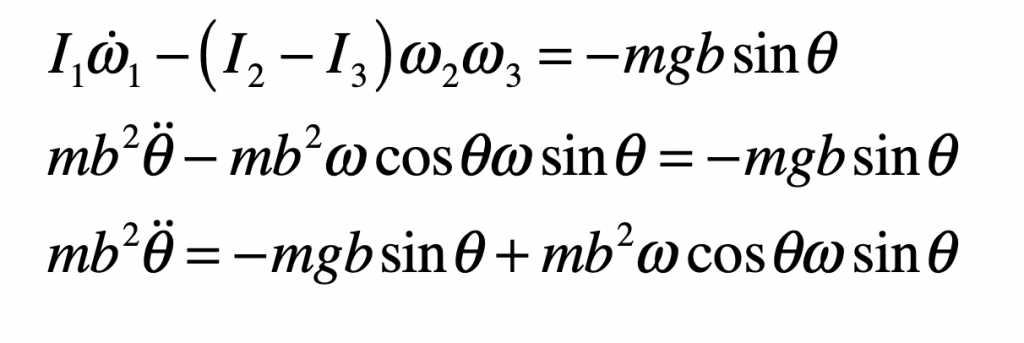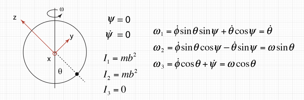 There is only one Euler equation that is non-trivial. This is for the x-axis and the angle θ. The x-axis Euler equation is