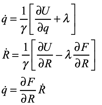where λ is the Lagrangian undetermined multiplier. The Euler-Lagrange equations for dynamics are