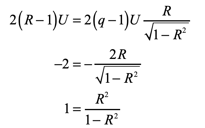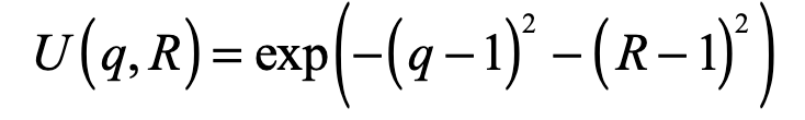 This function is obviously a maximum at maximum leisure (R = 1) and lots of coconuts (q = 1), but this is not allowed, because it lies off the production curve q(R). Therefore the question becomes: where on the production curve he can maximize the trade-off between coconuts and leisure?
