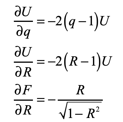 where all q’s are expressed as R’s through the equation of constraint. The speed vanishes at the fixed point—the economic equilibrium—when