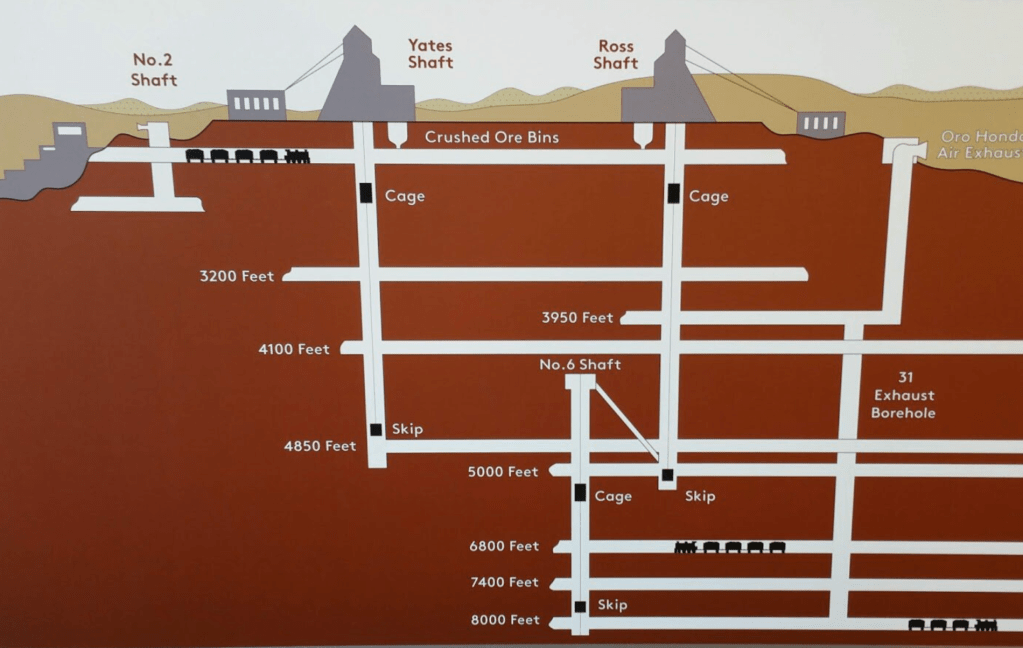 By the late 1900’s, the mining company had excavated over 300 miles of tunnels and extracted nearly 40 million ounces of gold (equivalent to $100B today). Over the years, the mine had gone deeper and deeper, eventually reaching the 8000 foot level (about 3000 feet below sea level).