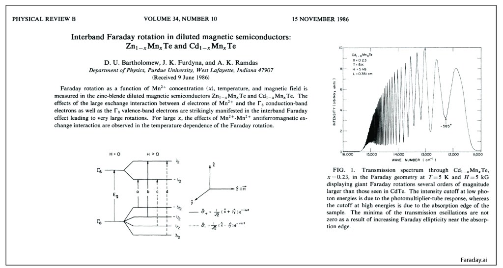 [5] D. U. Bartholomew, J. K. Furdyna, and A. K. Ramdas, “INTERBAND FARADAY-ROTATION IN DILUTED MAGNETIC SEMICONDUCTORS – ZN1-XMNXTE AND CD1-XMNXTE,” Physical Review B, Article vol. 34, no. 10, pp. 6943-6950, Nov 1986, doi: 10.1103/PhysRevB.34.6943.