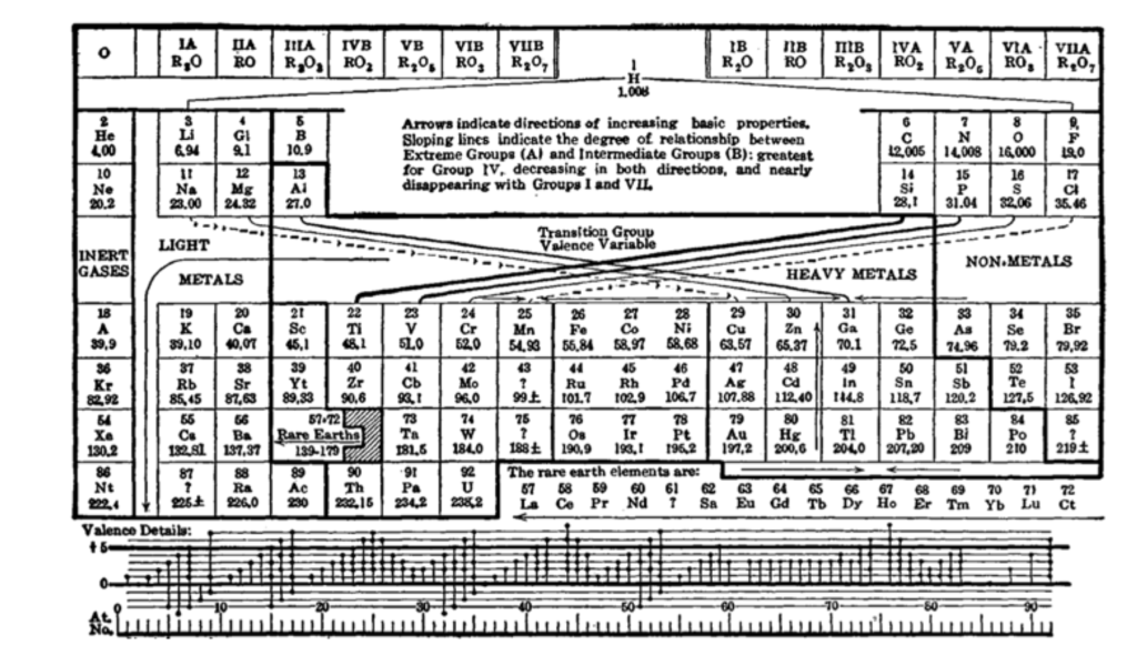Around this time, he read a paper by Edmund Stoner in the Philosophical Magazine of London published in October of 1924. Stoner’s insight was a connection between the number of states observed in a magnetic field and the number of states filled in the successive positions of elements in the periodic table. Stoner’s insight led naturally to the 2-8-18 sequence for the table, although he was still thinking in terms of the quantum numbers of the core model of the atoms.