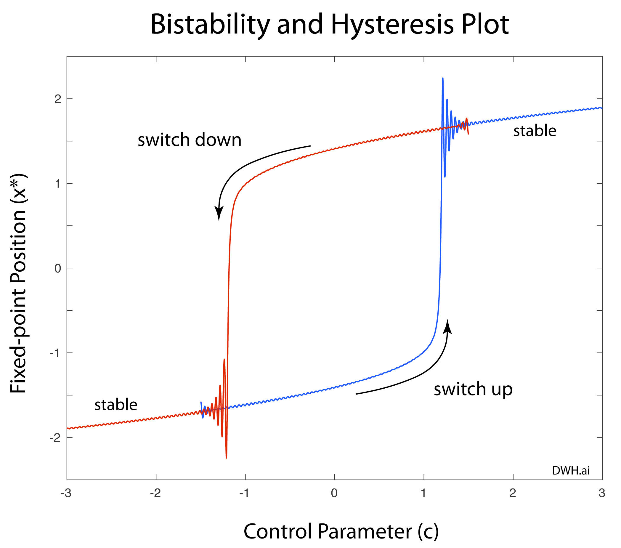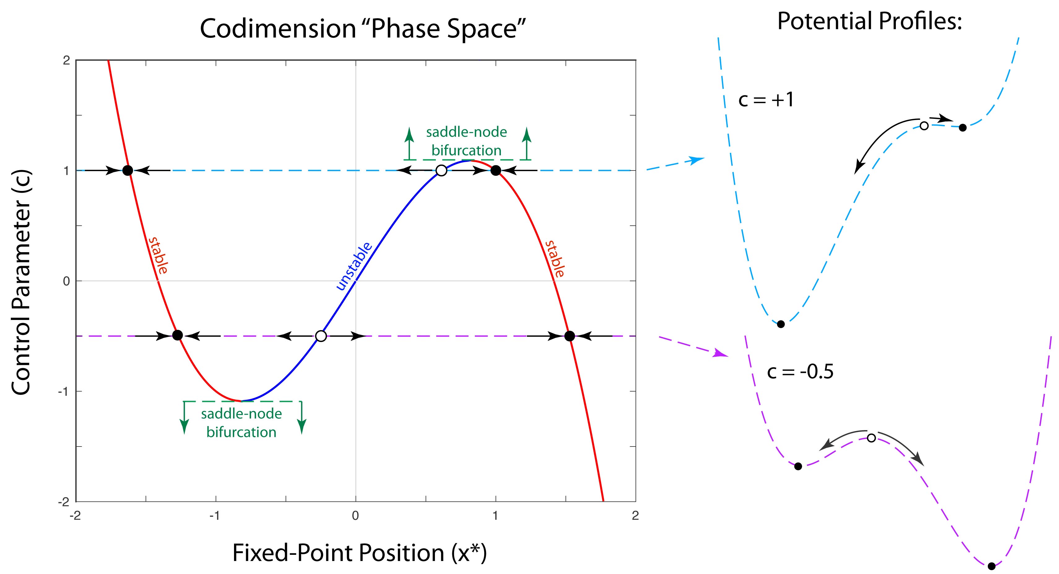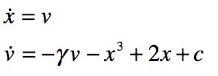 The onset of turbulence was an iconic problem in nonlinear physics with a long history and a long list of famous researchers studying it. As far back as the Renaissance, Leonardo da Vinci had made detailed studies of water cascades, sketching whorls upon whorls in charcoal in his famous notebooks. Heisenberg, oddly, wrote his PhD dissertation on the topic of turbulence even while he was inventing quantum mechanics on the side. Kolmogorov in the 1940’s applied his probabilistic theories to turbulence, and this statistical approach dominated most studies up to the time when David Ruelle and Floris Takens published a paper in 1971 that took a nonlinear dynamics approach to the problem rather than statistical, identifying strange attractors in the nonlinear dynamical Navier-Stokes equations [10]. This paper coined the phrase “strange attractor”. One of the distinct characteristics of their approach was the identification of a bifurcation cascade. A single bifurcation means a sudden splitting of an orbit when a parameter is changed slightly. In contrast, a bifurcation cascade was not just a single Hopf bifurcation, as seen in earlier nonlinear models, but was a succession of Hopf bifurcations that doubled the period each time, so that period-two attractors became period-four attractors, then period-eight and so on, coming fast and faster, until full chaos emerged. A few years later Gollub and Swinney experimentally verified the cascade route to turbulence , publishing their results in 1975 [11].