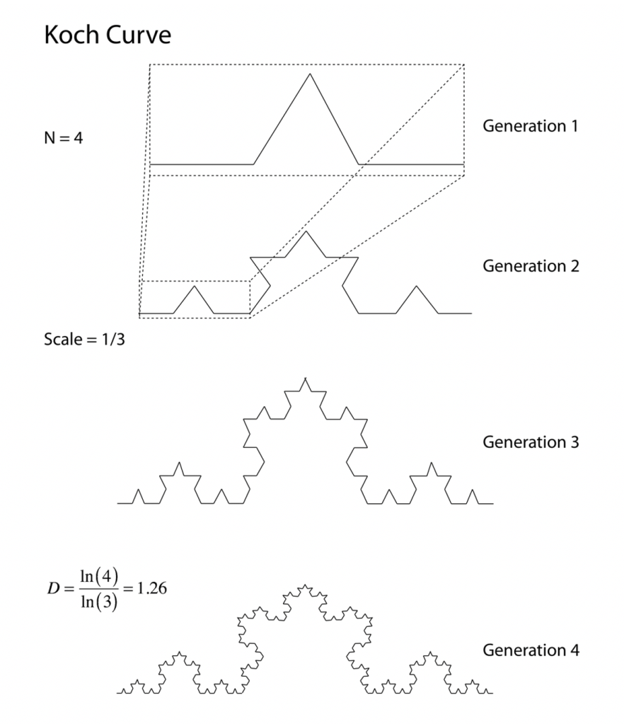 This was followed quickly by another construction, invented by David Hilbert in 1891, that divided the square into four instead of nine, simplifying the construction, but also showing that such constructions were easily generated [2]. The space-filling curves of Peano and Hilbert have the extreme properties that a one-dimensional curve approaches every point in a two-dimensional space. These curves have topological dimensionality of 1D and a fractal dimensionality of 2D.