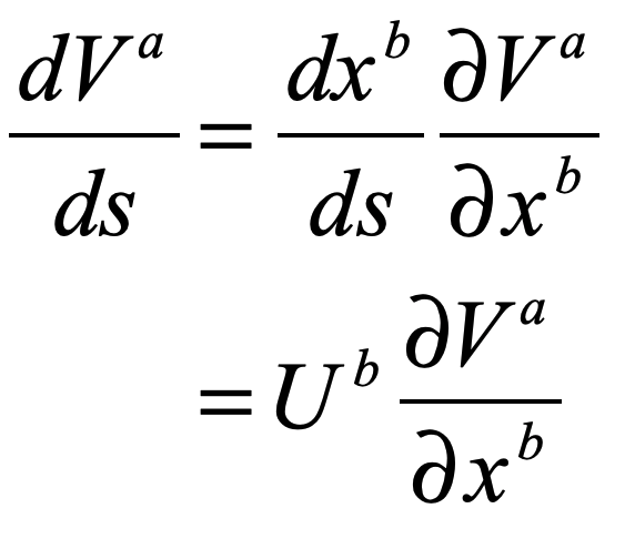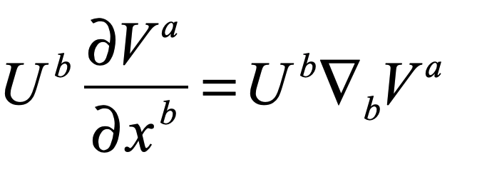 where a new symbol, the del-operator has been introduced.  This del-operator is known as the “covariant derivative” of the vector component.  Again, forget the “covariant” part and just think “gradient”.  Namely, taking the gradient of a vector in general includes changes in the vector component as well as changes in the basis vector.