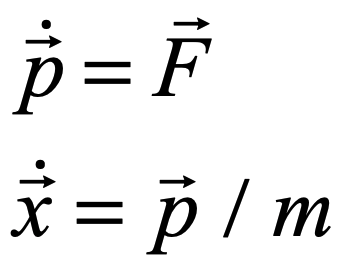 which is actually closer to the way that Newton expressed the law in his Principia.  In three dimensions for a single particle, these equations represent a 6-dimensional dynamical space called phase space: three coordinate dimensions and three momentum dimensions.  Then generalize the vector quantities, like the position vector, to be expressed as xa for the six dynamics variables: x, y, z, px, py, and pz