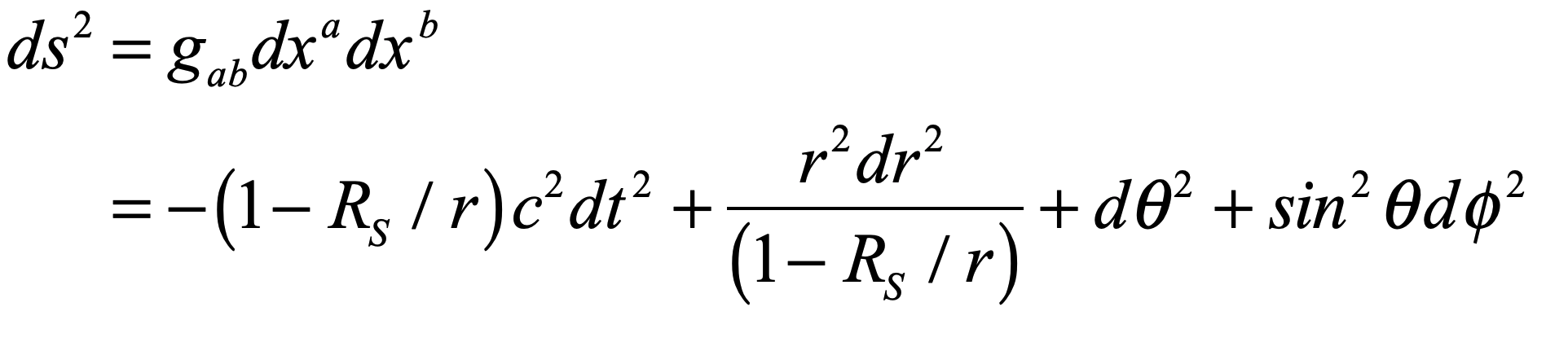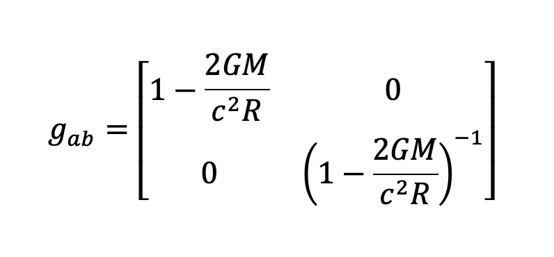 So, stating the way that matter bends space-time is as simple as writing down the length element for the Schwarzschild metric of a spherical gravitating mass as