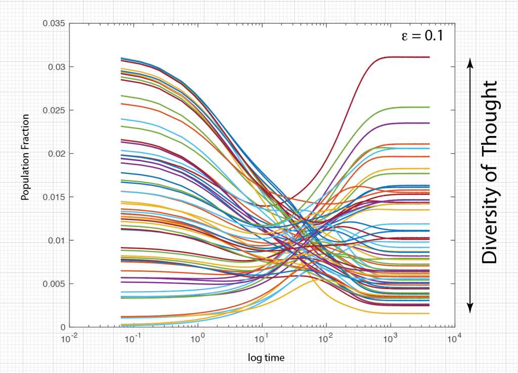 Ecosystems are among the most complex systems on Earth. The complex interactions among hundreds or thousands of species may lead to steady homeostasis in some cases, to growth and collapse in other cases, and to oscillations or chaos in yet others. But the definition of species can be broad and abstract, referring to businesses and markets in economic ecosystems, or to cliches and acquaintances in social ecosystems, among many other examples. These systems are governed by the laws of evolutionary dynamics that include fitness and survival as well as adaptation. The dimensionality of the dynamical spaces for these systems extends to hundreds or thousands of dimensions—far too complex to visualize when thinking in four dimensions is already challenging.