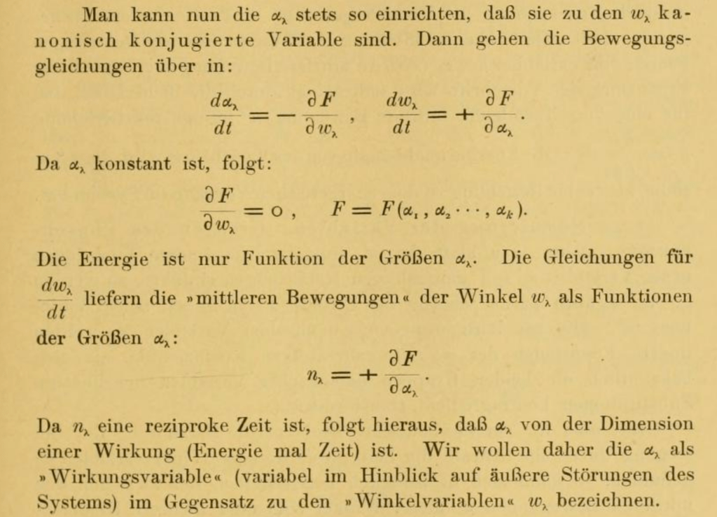 Fig. 5 Description of the canonical transformation to action-angle coordinates (Ref. [9] pg. 549). Schwarzschild names the new coordinates “Wirkungsvariable” and “Winkelvariable”.