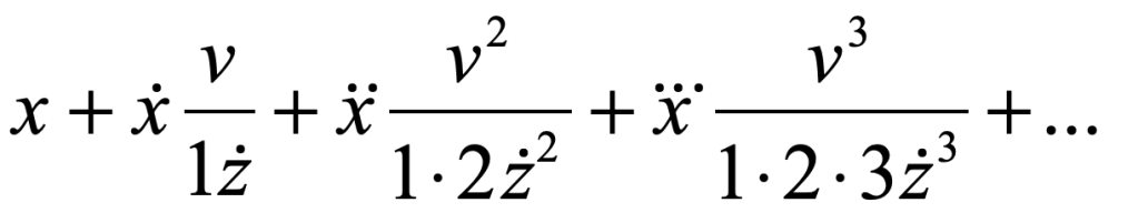 where the “dots” are time derivatives, x stands for the ordinate (the function), v is a finite difference, and z is the abcissa moving with constant speed. If the abcissa moves with unit speed, then this becomes Taylor’s Series (in modern notation)