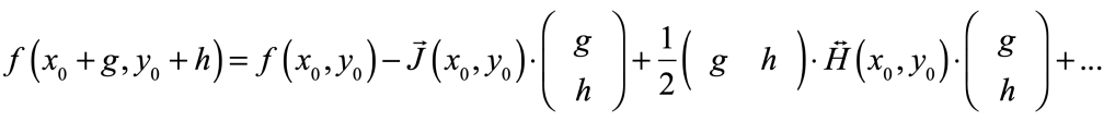 where J is the Jacobian matrix (vector) and H is the Hessian matrix defined for the scalar function as