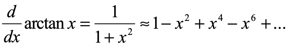 This is James Gregory’s famous series. Although the math here is modern and only takes a few lines, it parallel’s Gregory’s approach. But Gregory had to invent aspects of calculus as he went along — his derivation covering many dense pages. In the priority dispute between Leibniz and Newton, Gregory is usually overlooked as an independent inventor of many aspects of the calculus. This is partly because Gregory acknowledged that Newton had invented it first, and he delayed publishing to give Newton priority.